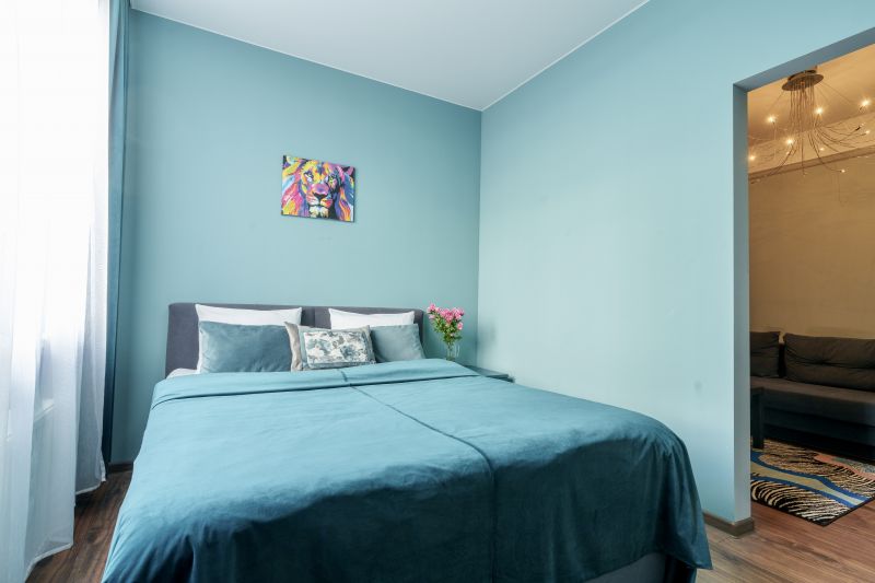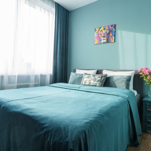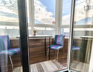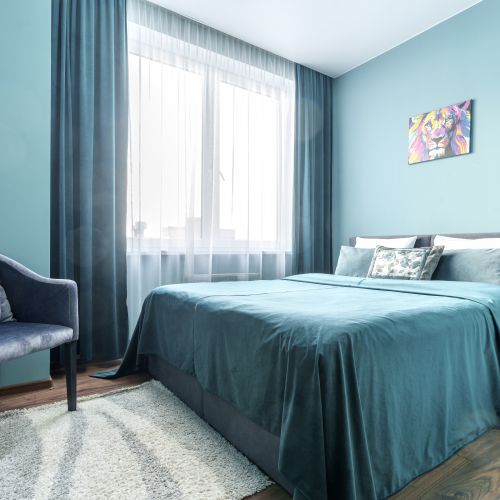 Квартира находится на 9/10 этаже, есть лифт. Апартаменты полностью укомплектована всей необходимой мебелью и техникой: 2-спальная кровать, диван для отдыха, телевизор, стиральная машина, сушилка, фен, утюг, гладильная доска, зонтик, высокоскоростной WiFi. На кухне холодильник, микроволновая печь, электрочайник, плита, вся посуда в достаточном количестве. Свежее хлопковое белое постельное бельё и белые махровые полотенца.